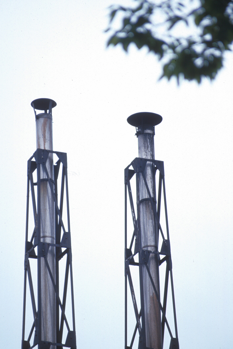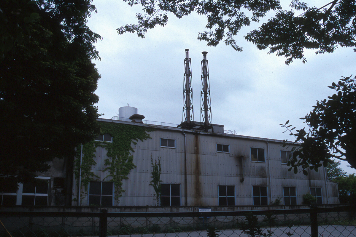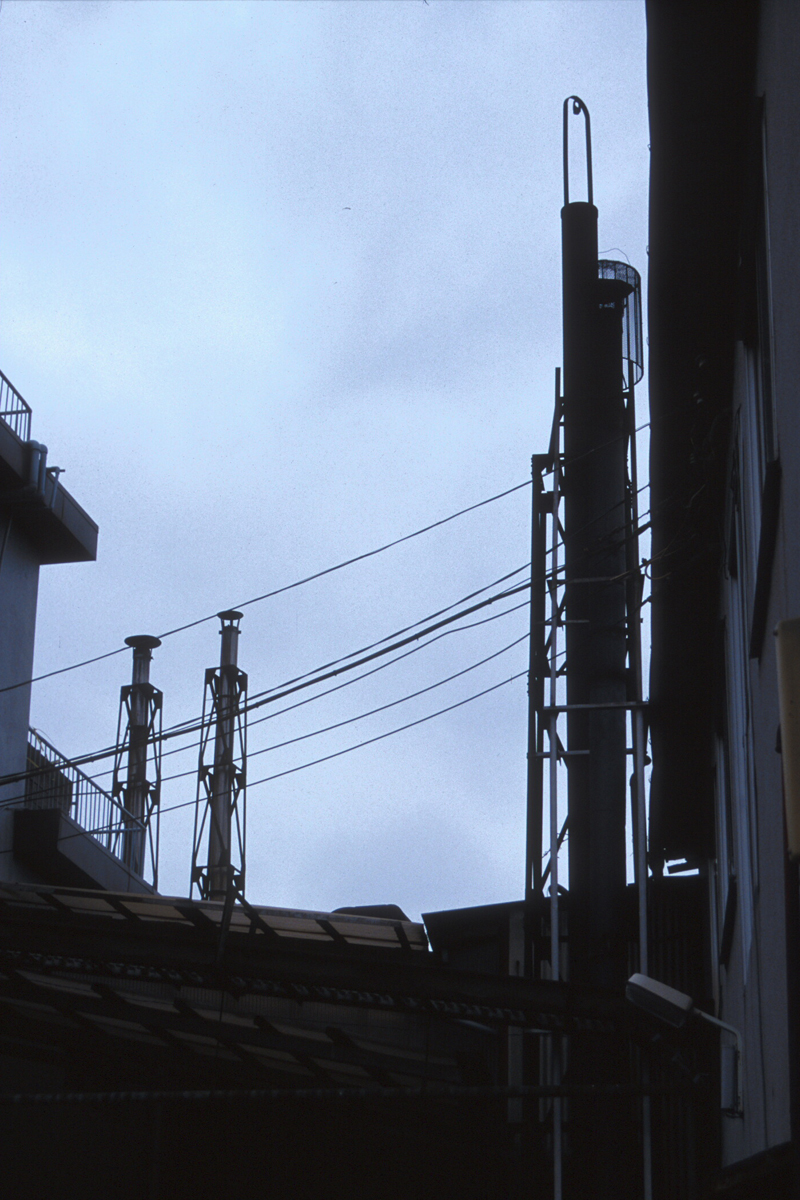 地上の焼却炉の煙突(右)と屋根上のツイン煙突(左) Photo by Kirihara 2000-05C22