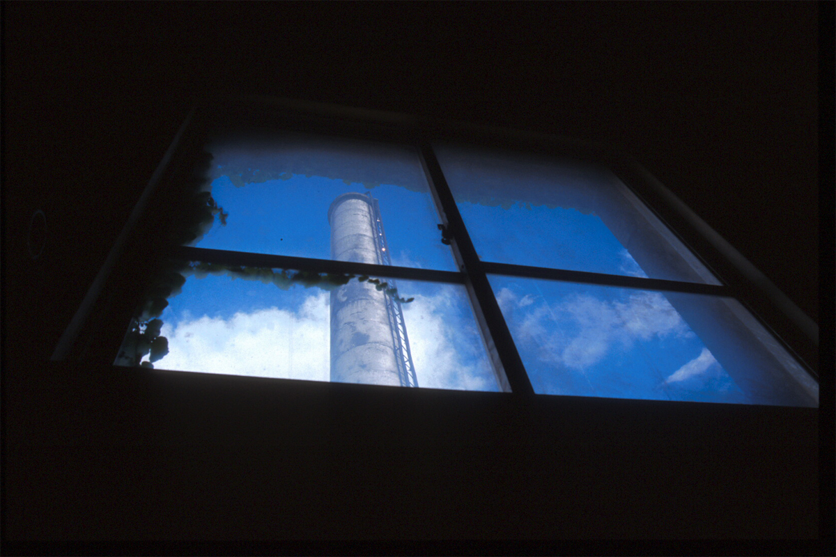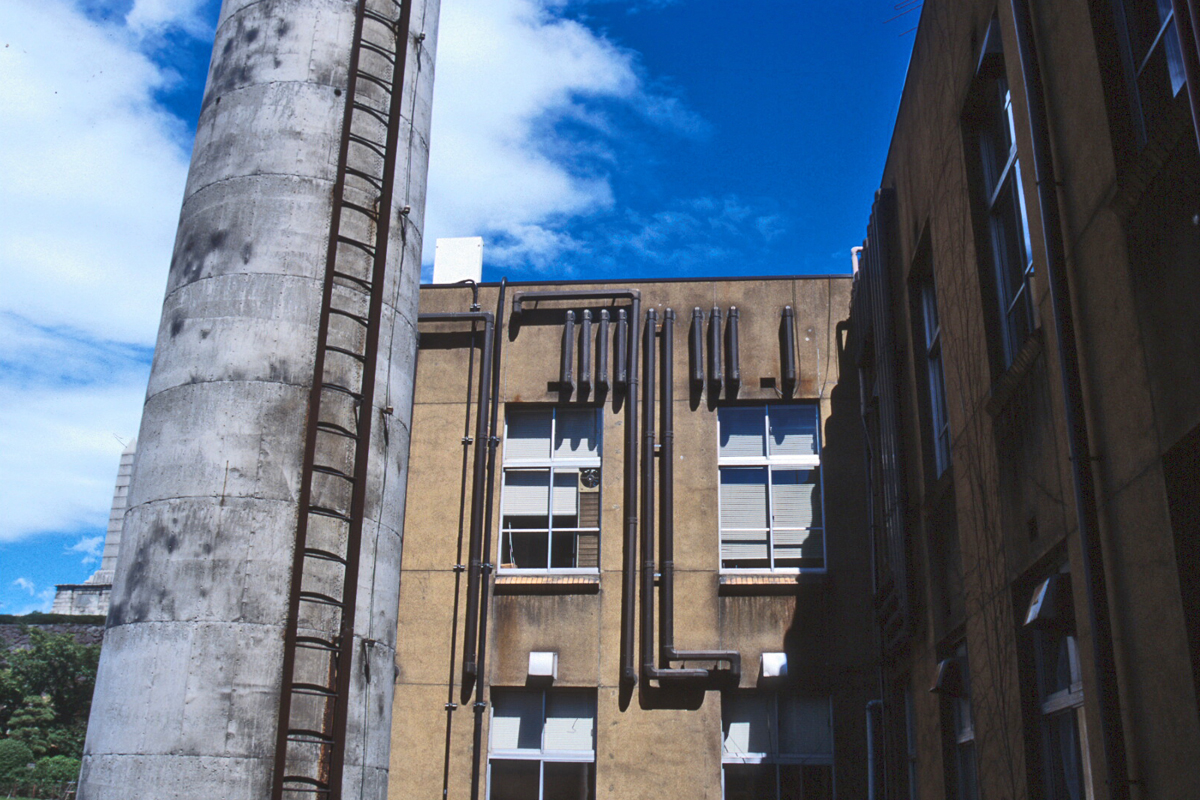 窓から見える煙突。何故か好い Photo by Kirihara 2000-07B13