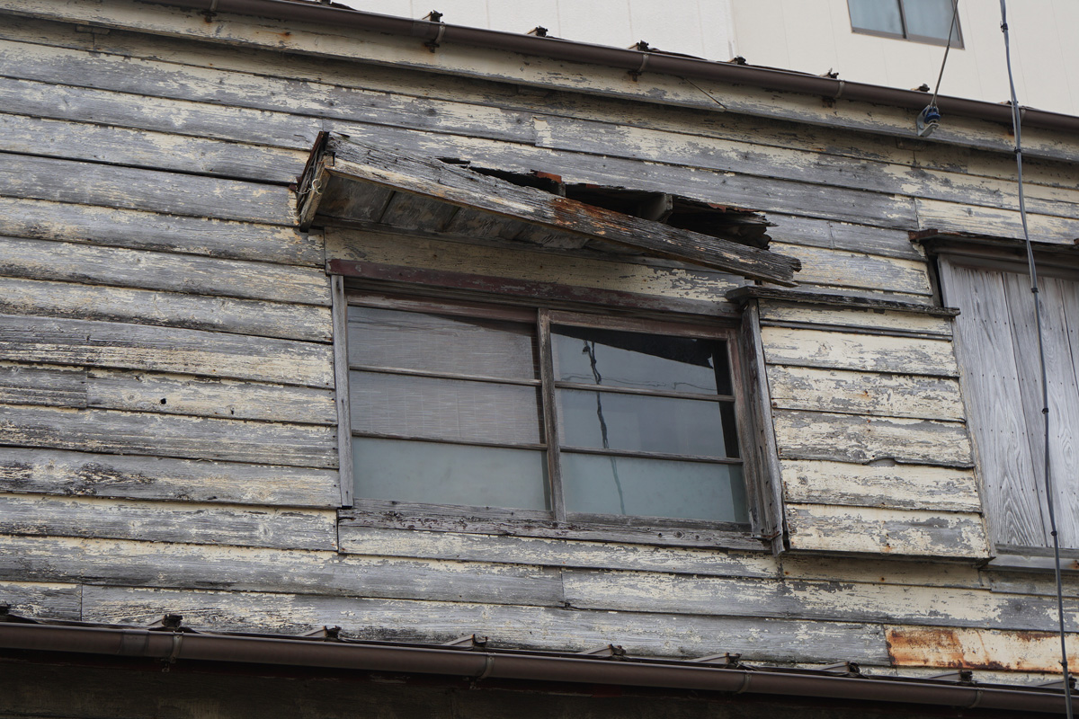 [No028 エイジング/木] 港町で潮風に曝され時を重ねた外壁と看板。その迫力が迫ってくる。すごい!分類