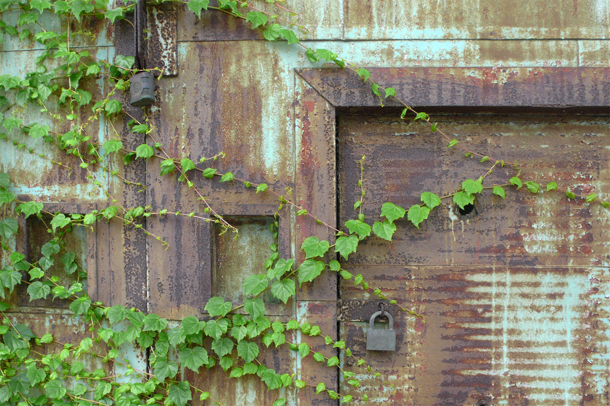 No022 門司港にある渋沢倉庫の鉄扉は、港の潮風に曝されダイナミックな錆扉になっている。