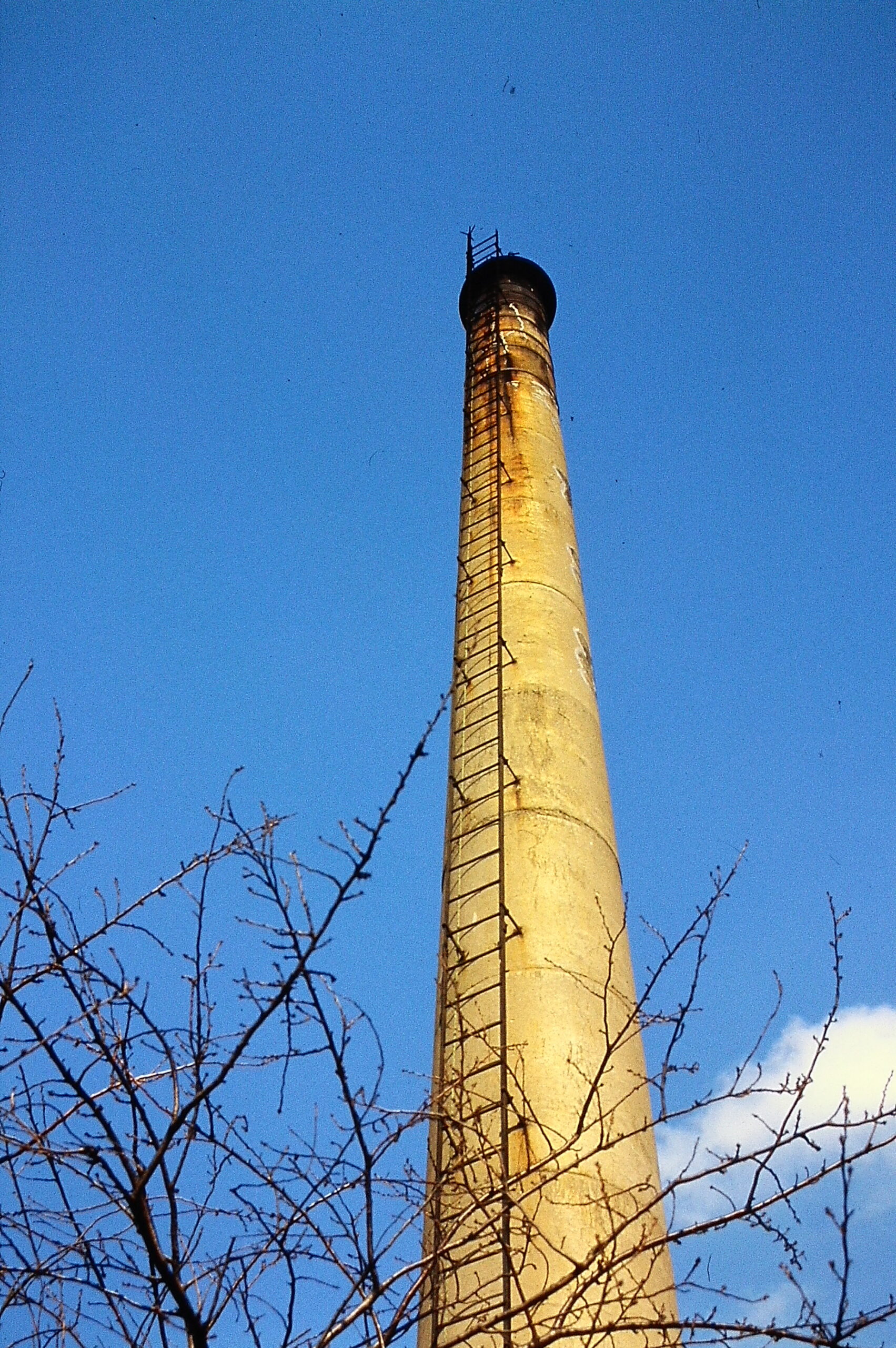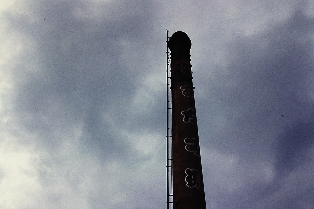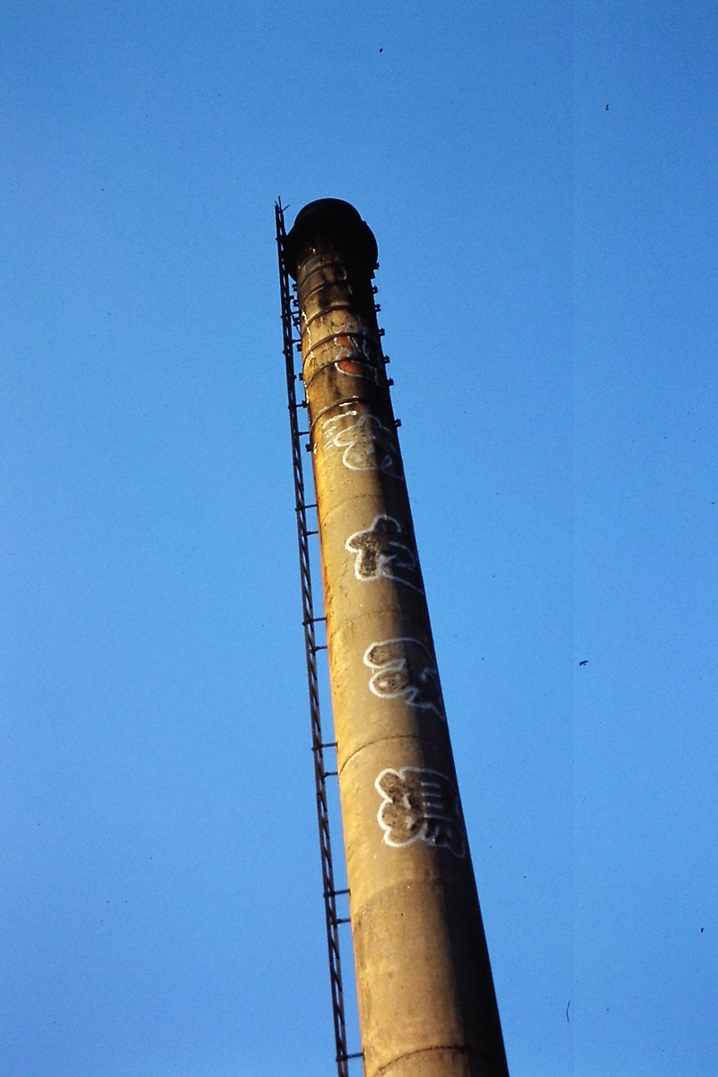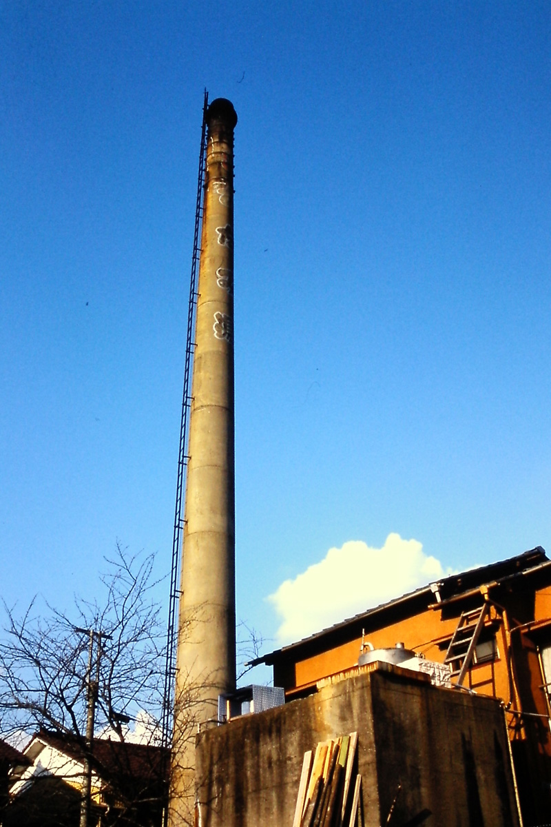 [No035 煙突/銭湯] 温泉マークと銭湯名が書かれているコンクリート製の典型的な銭湯の煙突分類