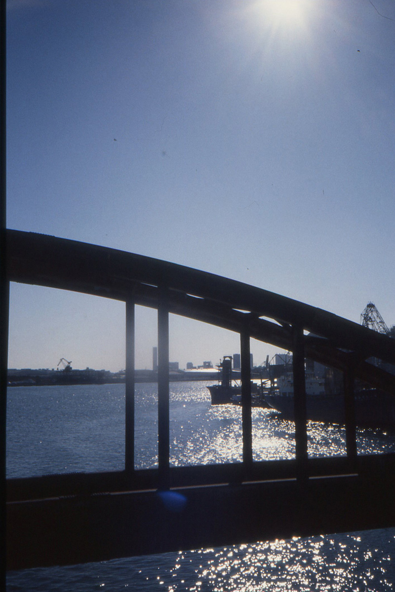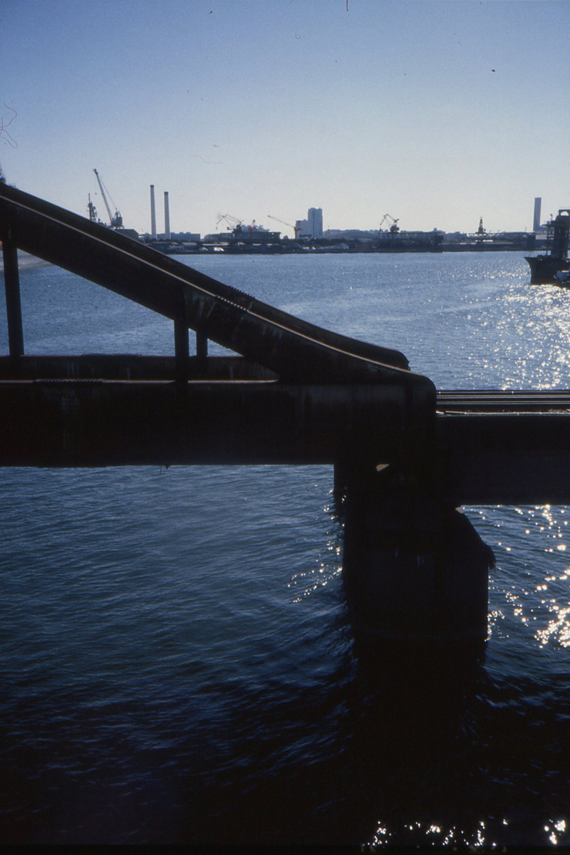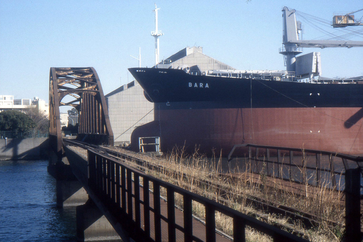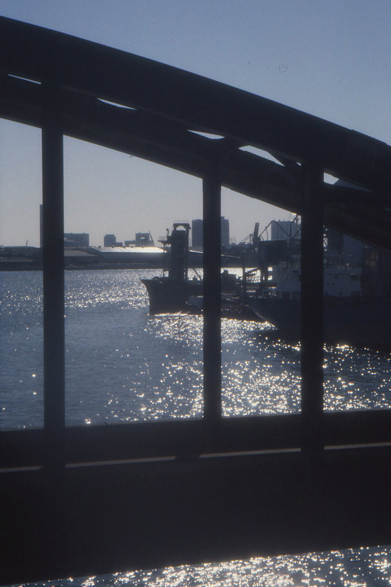 アーバンドッグパークの場所は石川島造船所が操業中で大型船が橋の近くまで迫ってた Photo by Kirihara _1998-01A26