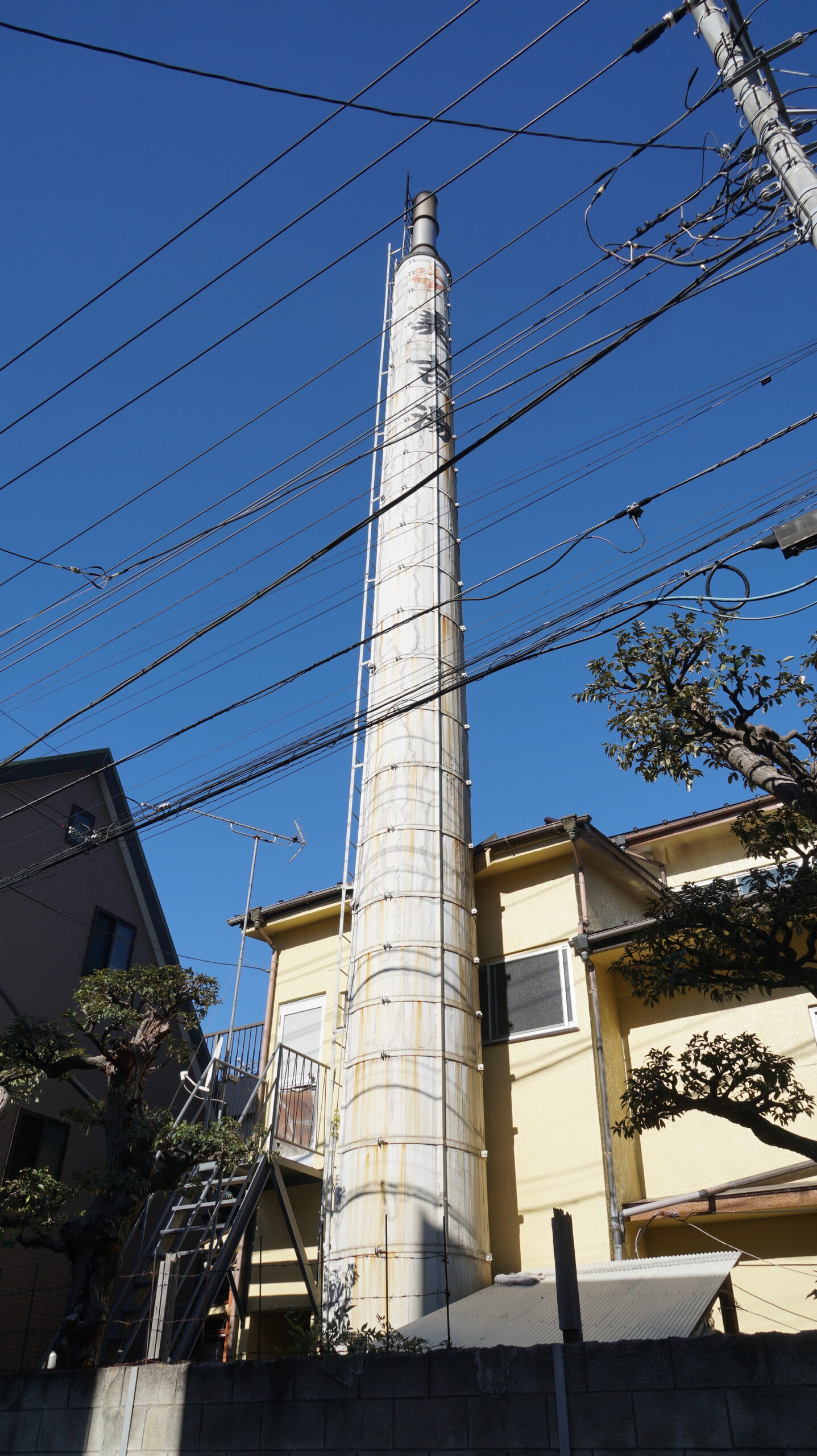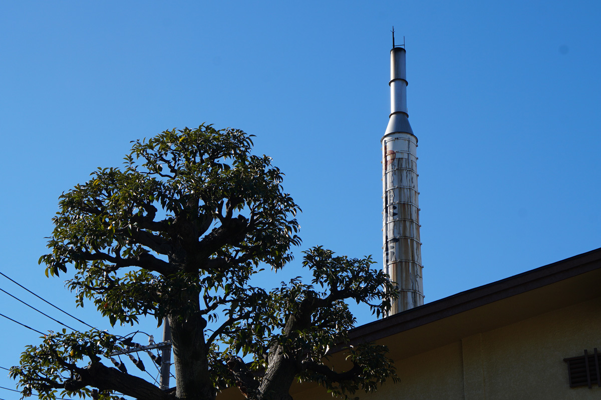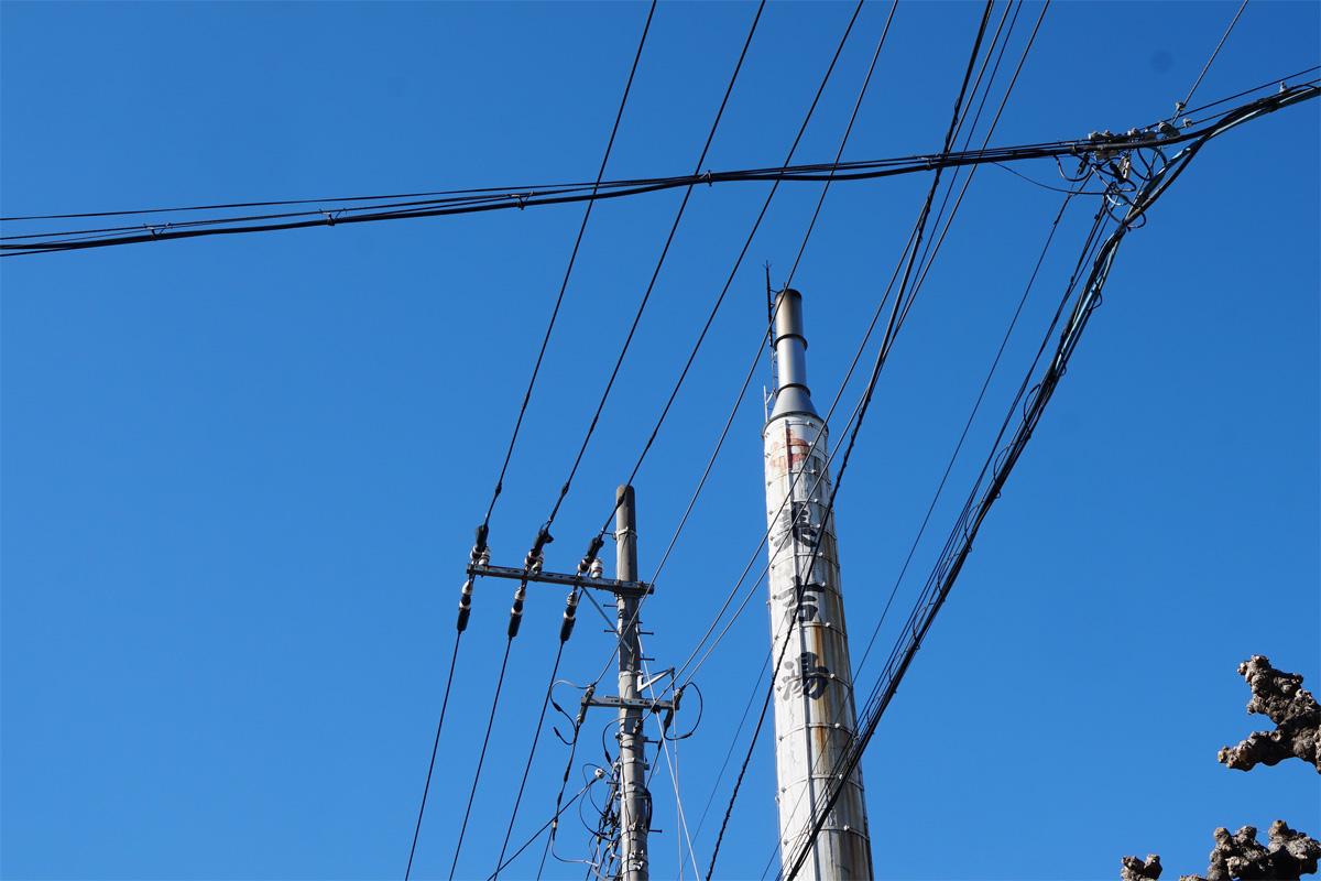 煙突を撮ろうとすると電線が写り込むけれど、それも昭和の風景 Photo by Kirihara 2024-0109_049