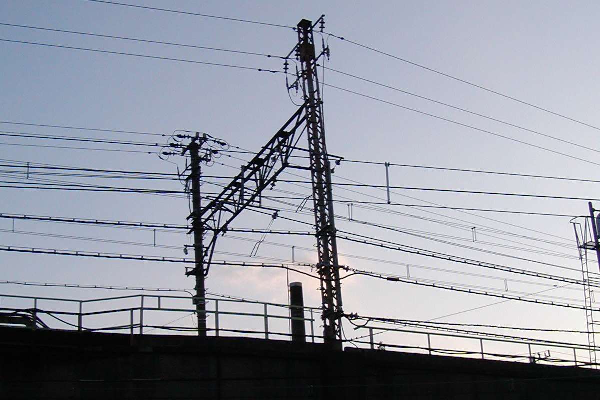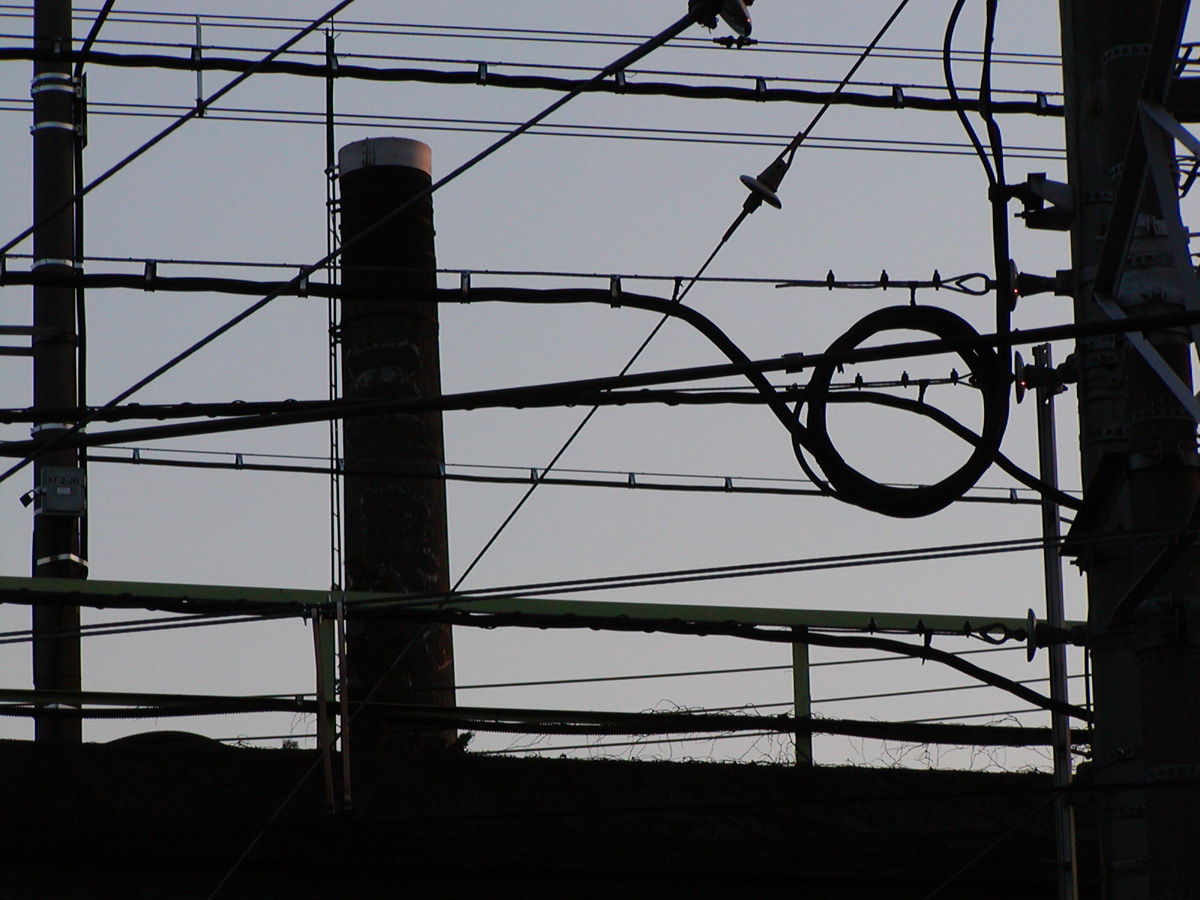 JR常磐線の架線と煙突 Photo by Kirihara 2003-0111-2_024