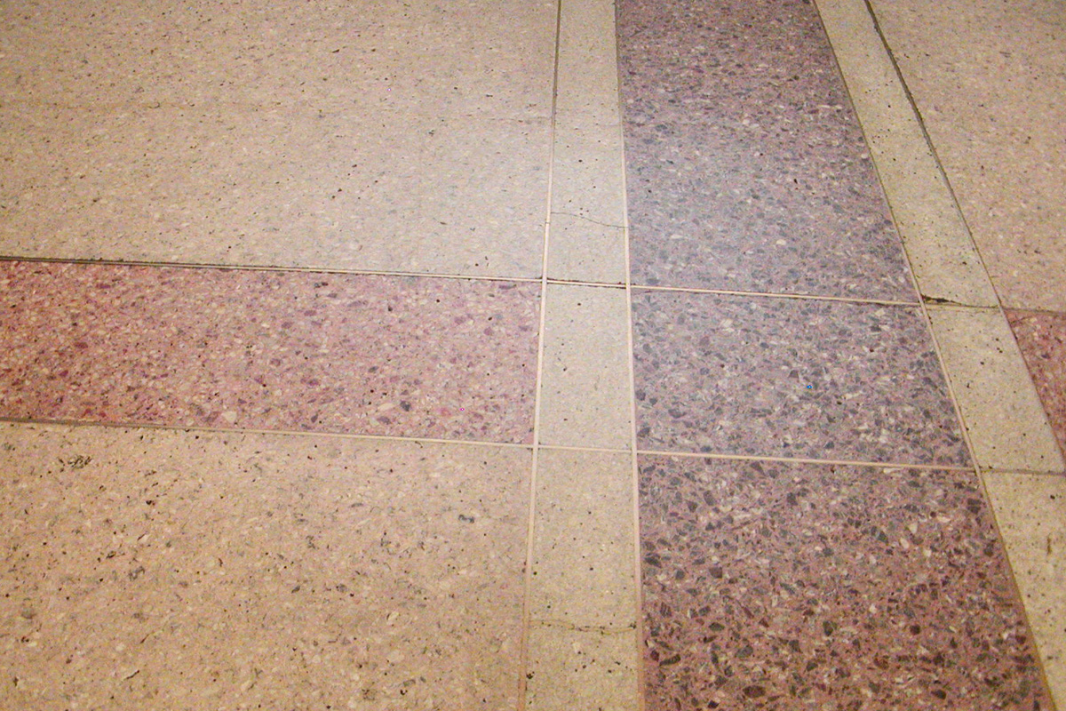 真鍮の目地棒にテラゾーのホール床 Photo by Kirihara 2004-0904_160