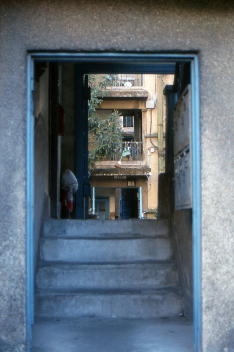 中庭と建物の外側とは階段室で穏やかにつながれている Photo by Kirihara 1999-01D24