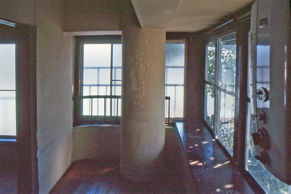 内観。外壁が丸柱から独立し窓が連続している Photo by Kirihara 1999-02A26