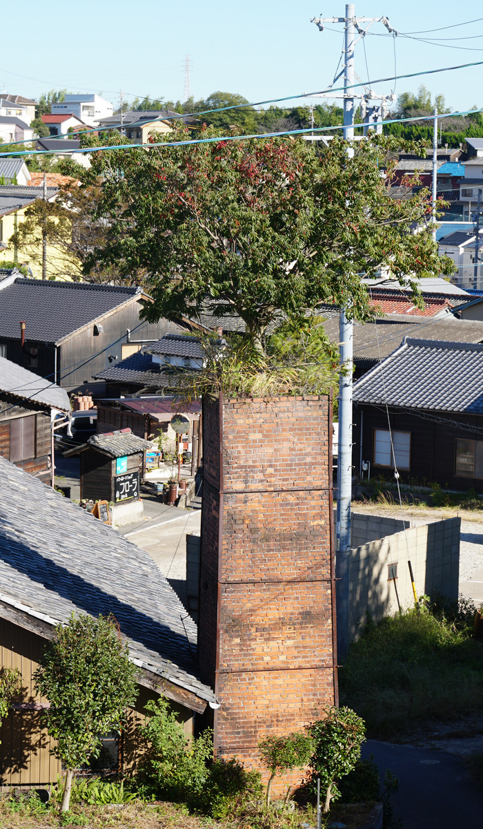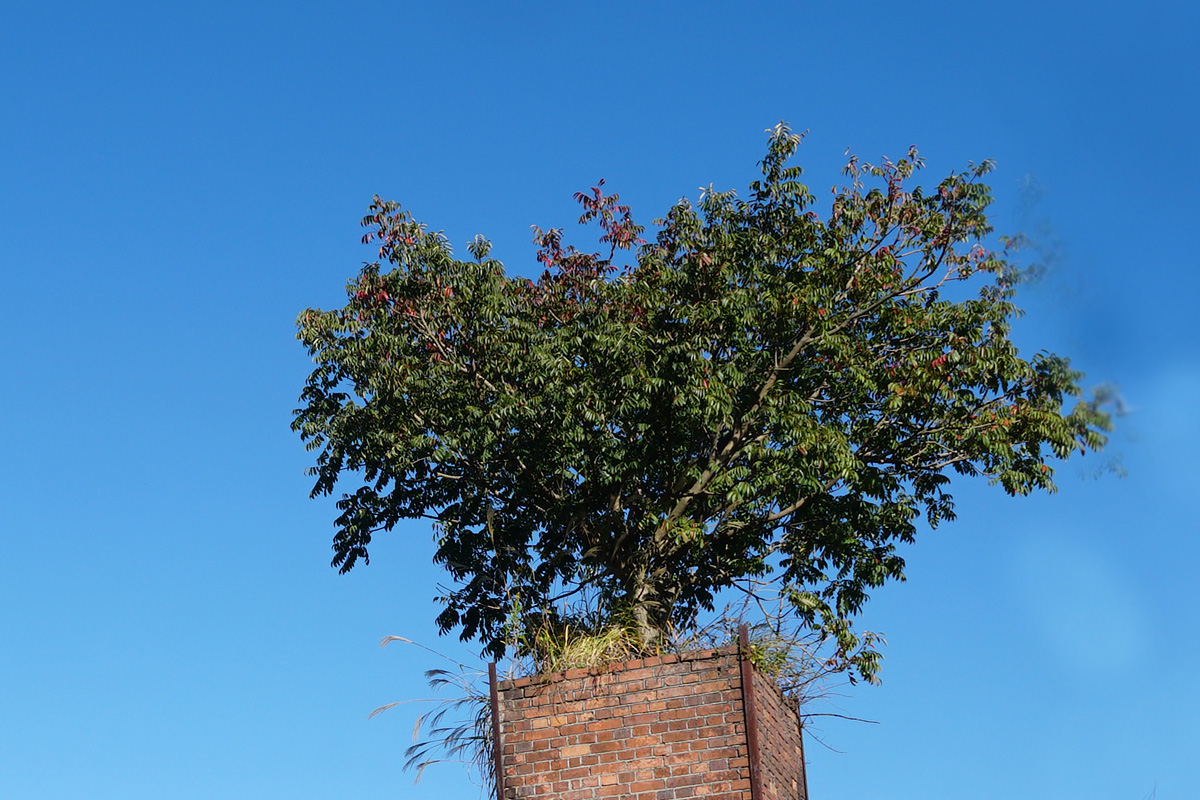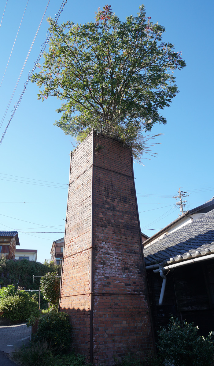 [No157 煙突/その他] 廃煙突に木が生えている。自然に生えたのではなく人為的にしたのではと思われる。
