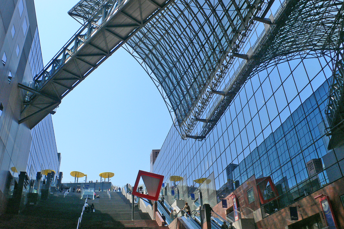 [No163 鉄道/駅舎、建築/My Favorite] ガラスで覆われ段丘状に左右に広がっていくコンコースがダイナミック。<設計:原 広司 竣工:1997年>