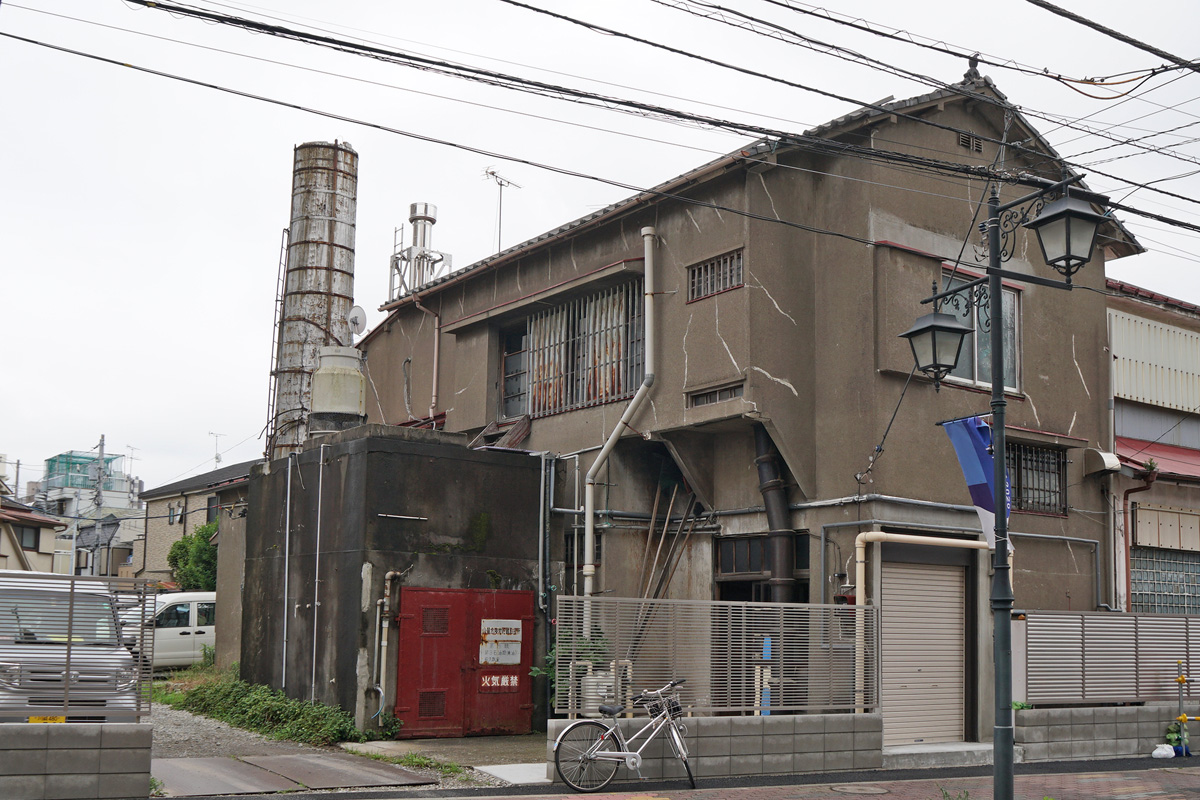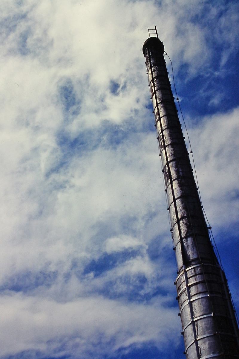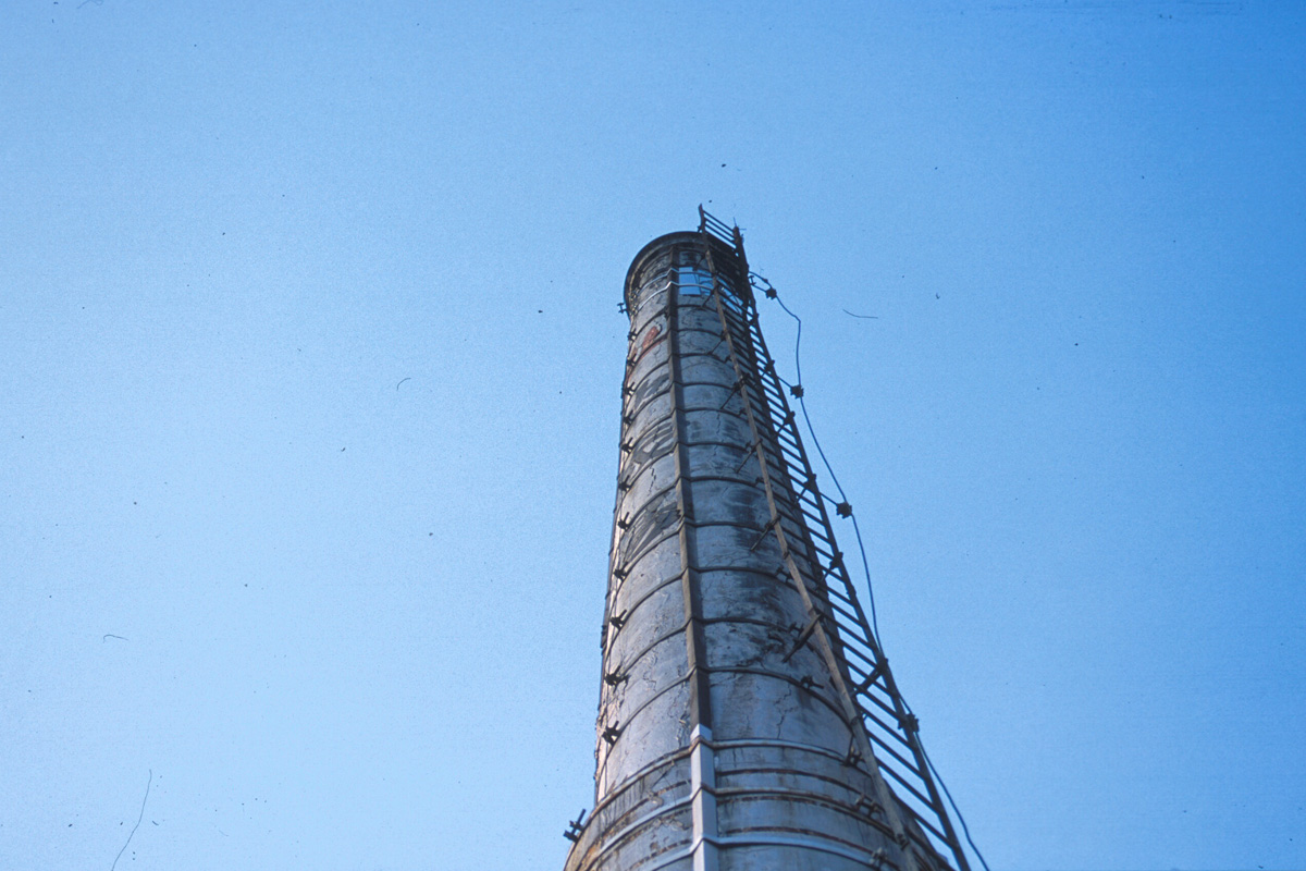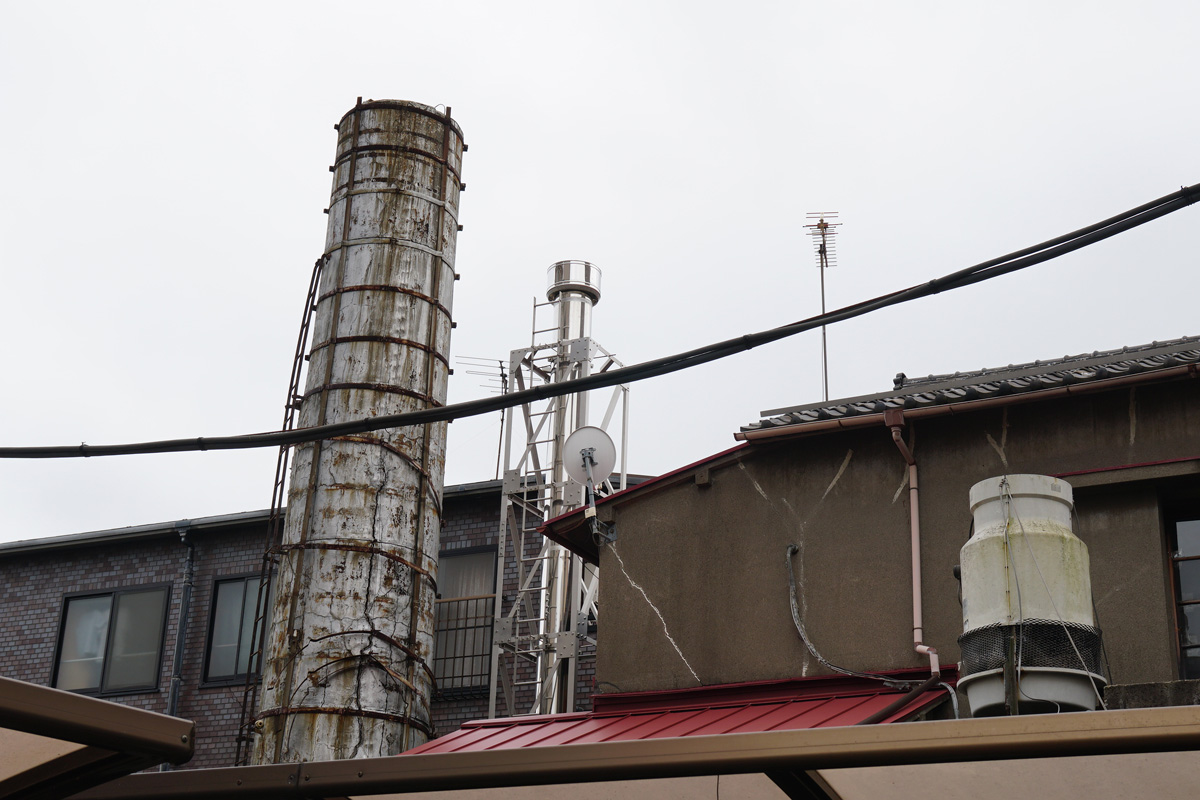[No190 煙突/銭湯] 二段ロケットの様に青空に向かって立っていたが、2000年になると上部が撤去され残念な形になってしまった。分類