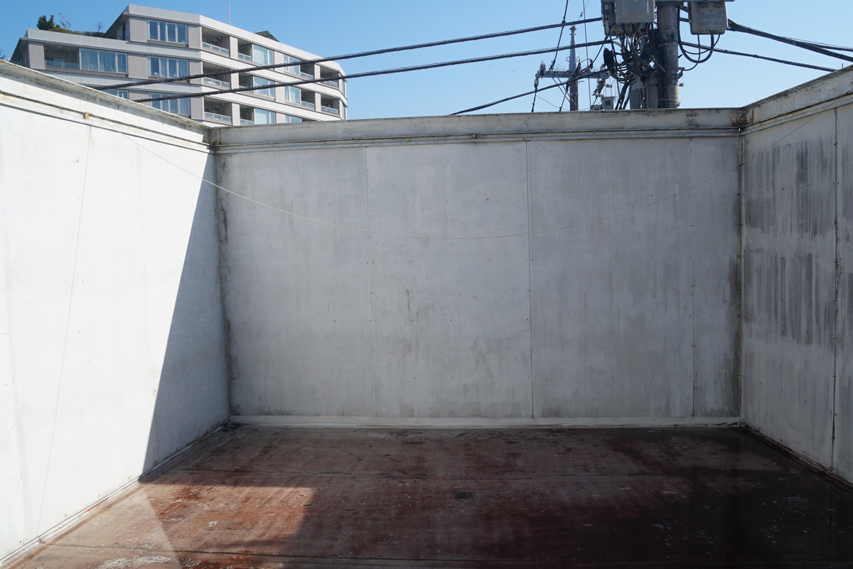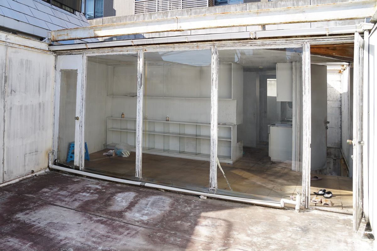 跳ね出している部分は屋外。東京の風景を見たくないので囲ったとか・・。 Photo by Kirihara 2020-0208-1_045