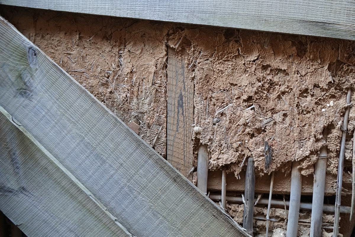 外壁の木板が剥がれ落ち下地の土壁が露出 Photo by Kirihara 2021-1028-2_014
