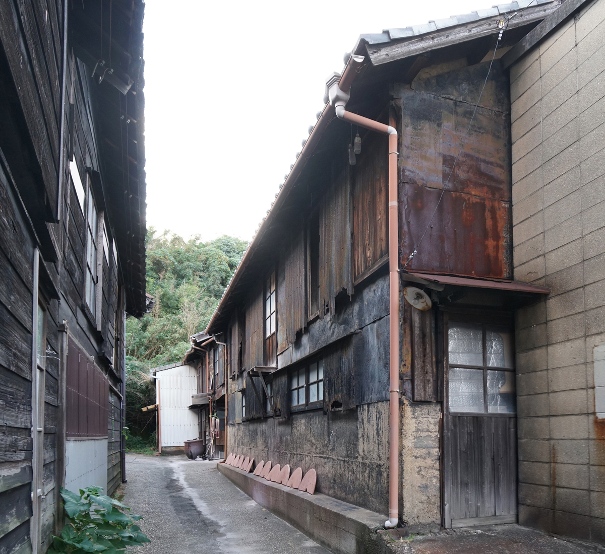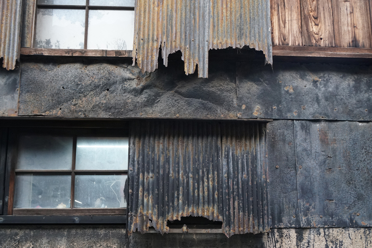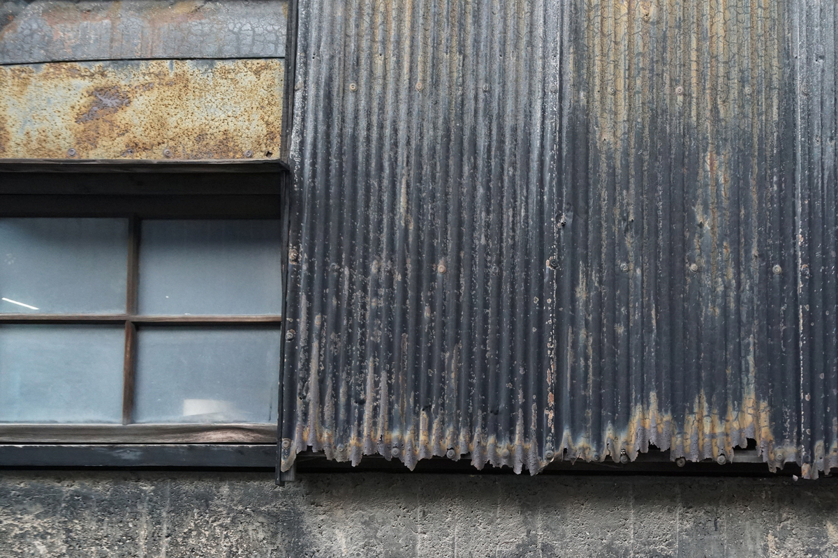 [No205 エイジング/鉄] やきもの散歩道脇の路地の先に見つけた使い込んだジーンズの様に年期の入った建物分類