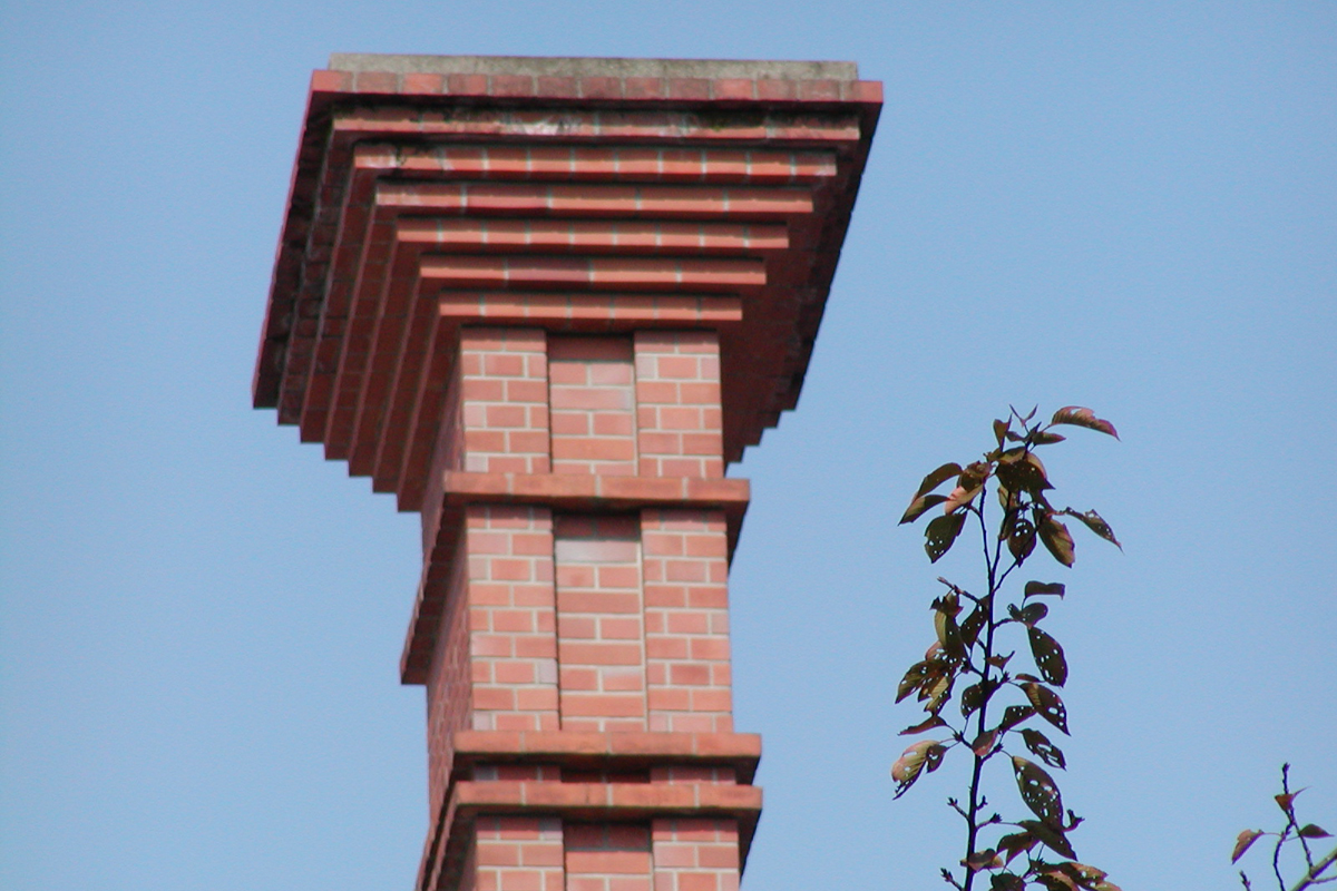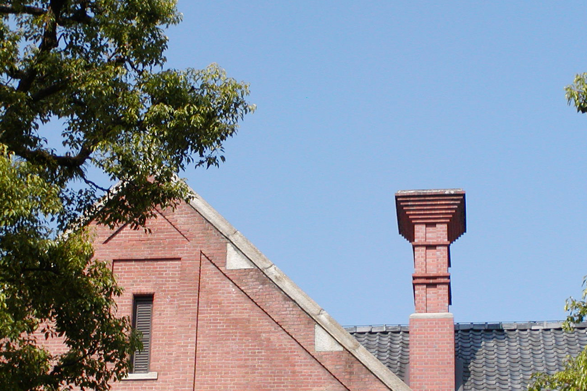 [No218 煙突/ビル] 同志社大学の煙突 その1。逆台形の頂部がめずらしい。分類