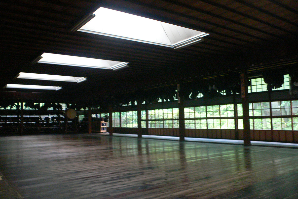 板張りの道場は通路から1段上がり、床下にはスプリングが埋め込まれている Photo by Kirihara 006-0705_029