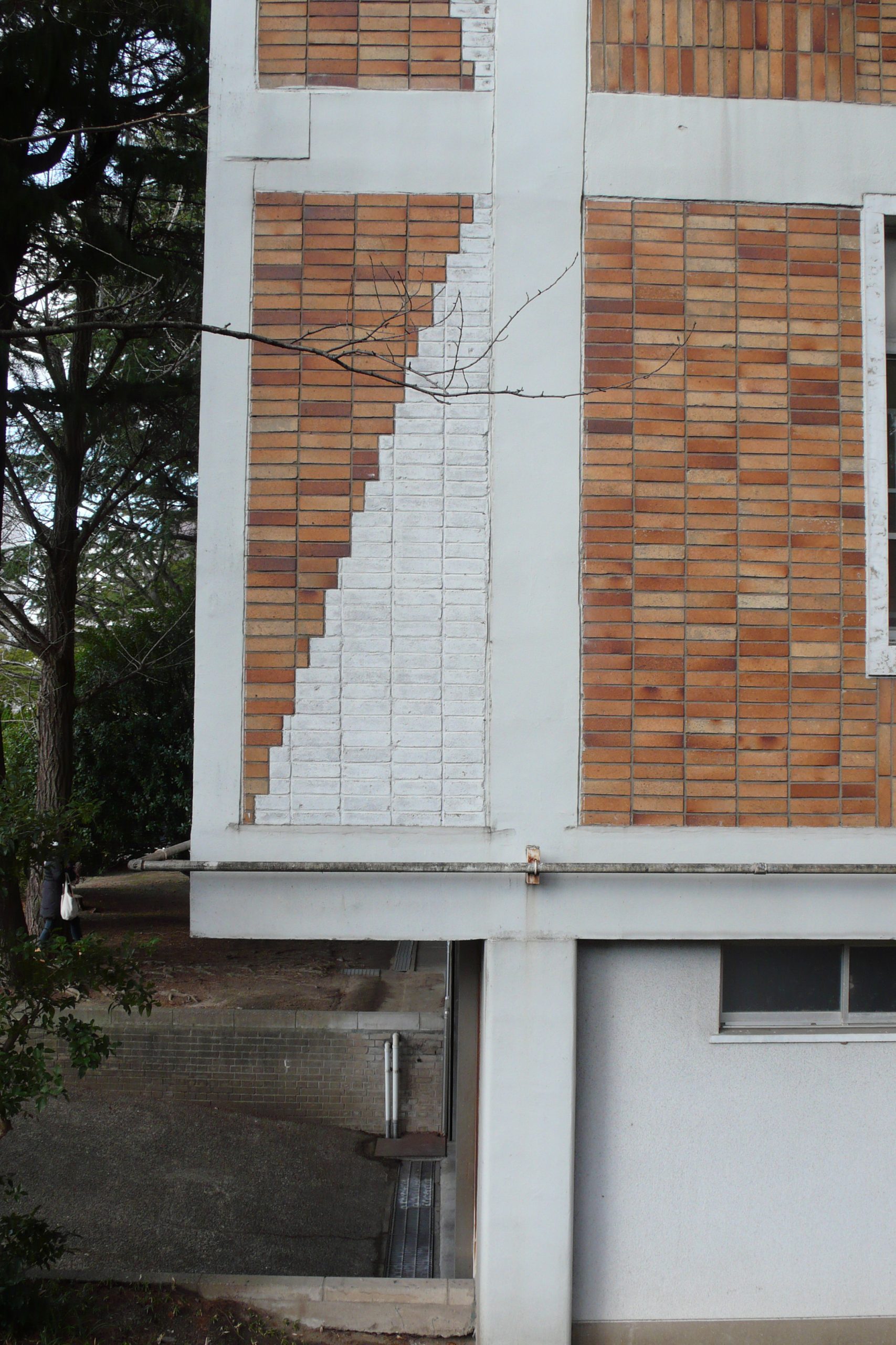 鉱滓煉瓦と赤黄色味をおびた煉瓦の幾何学模様の外壁 Photo by Kirihara 2016-0206_060