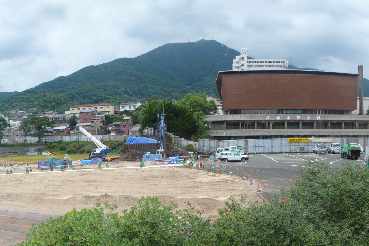 市民病院の駐車場にするため解体され更地に。右の建物は村野藤吾設計の八幡市民会館。解体が危惧されている。 Photo by Kirihara 2016-0206_021