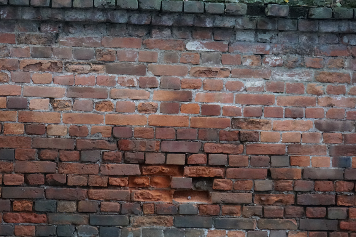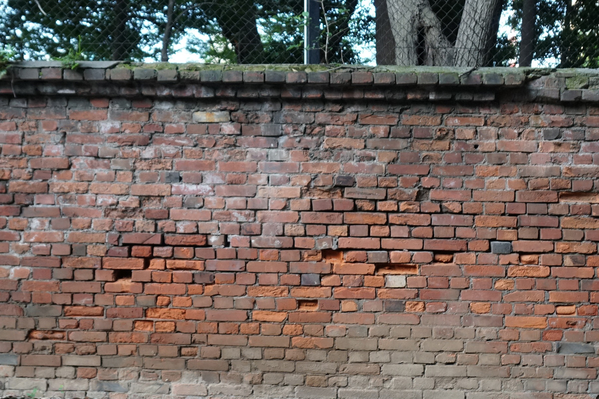 [No273 エイジング/煉瓦] 慶応義塾大学三田キャンパスの北側、建物の裏側で一寸目立たないレンガ塀。分類