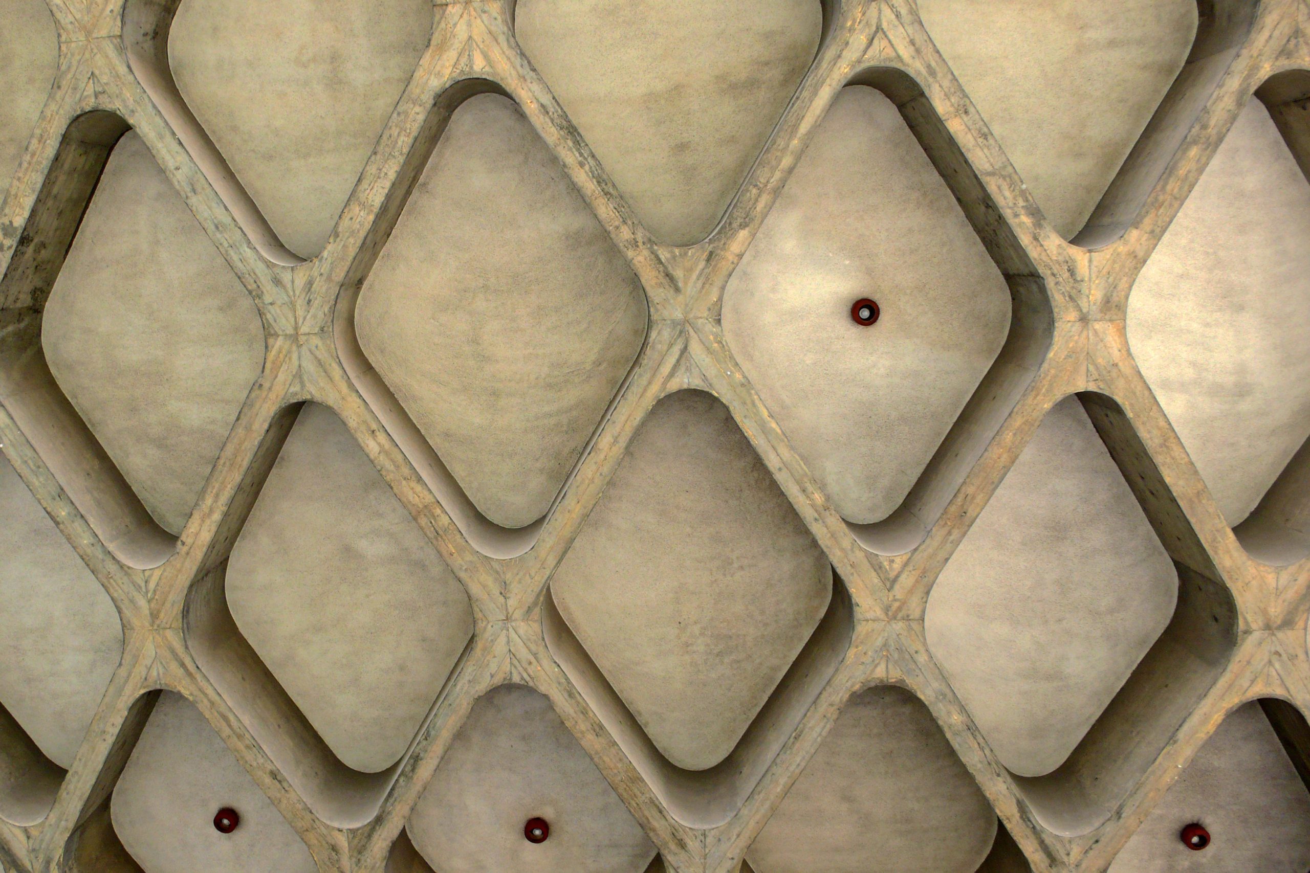 スタンド床を支える跳ね出し部分の格子梁。コンピュータが無い時代、手回しのカイガー計算機で座標を計算していた Photo by Kirihara 2014-0930-2_004