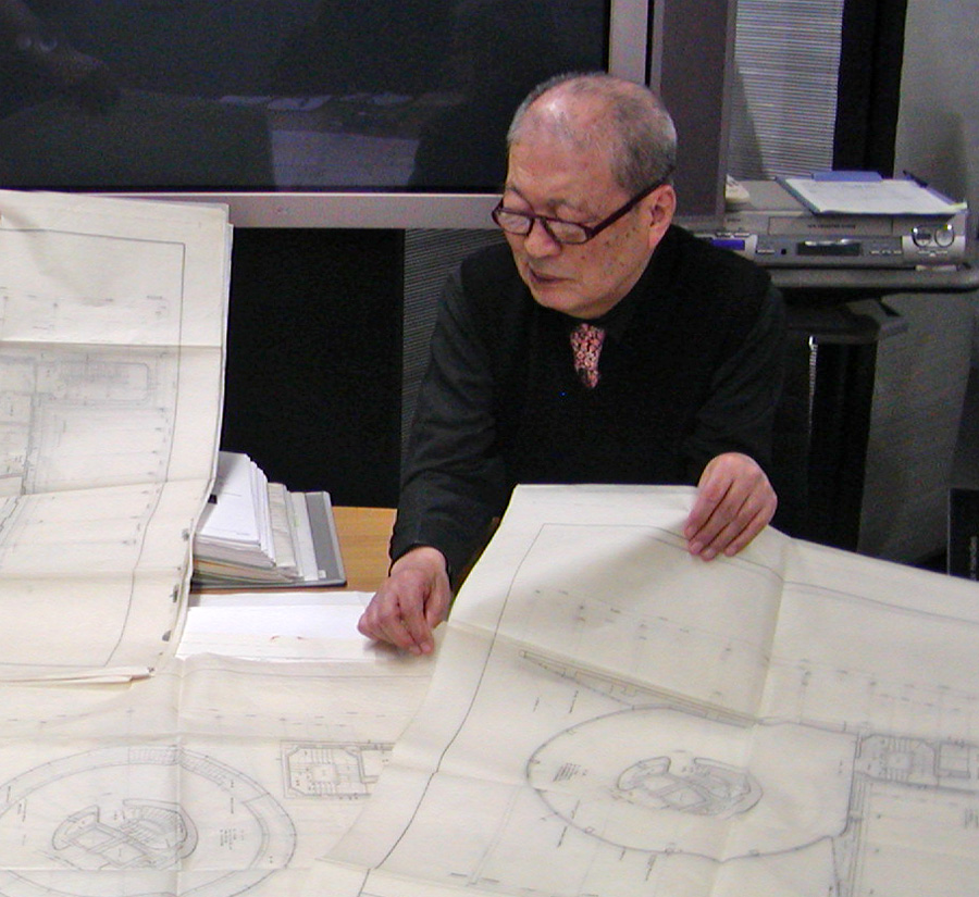 三愛の図面を見る設計者の林昌二氏 Photo by Kirihara 2004-1213_018