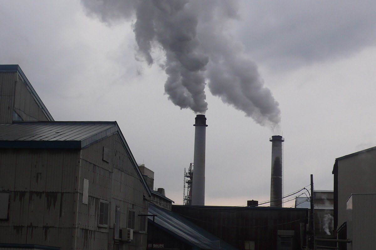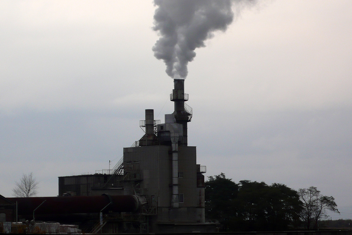 哀愁が漂う王子製紙江別工場の煙突