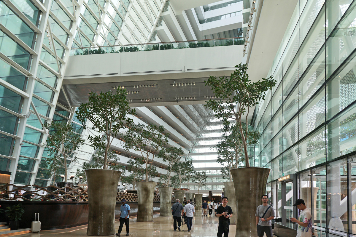 裾を広げた様なホテルの下部はホテルのロビーやレストラン、店舗で構成されている。 Photo by Kirihara 2025-0504_081