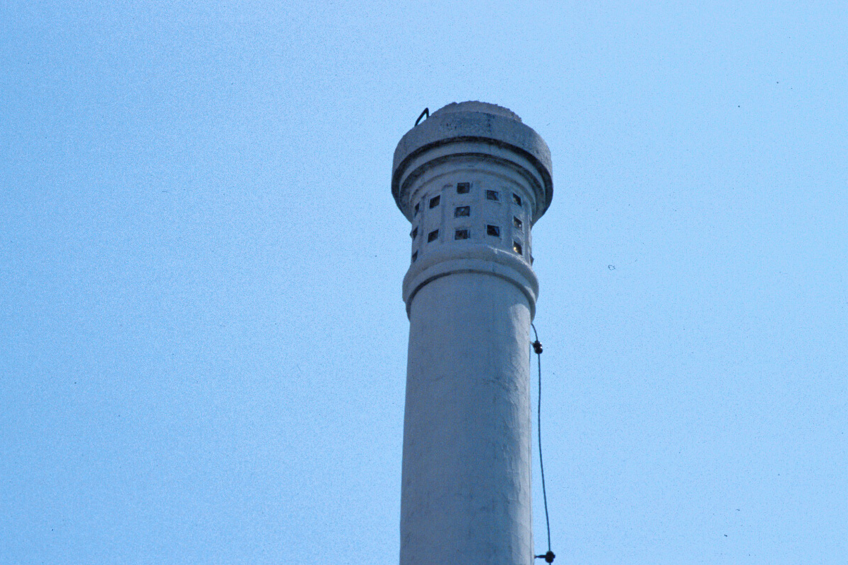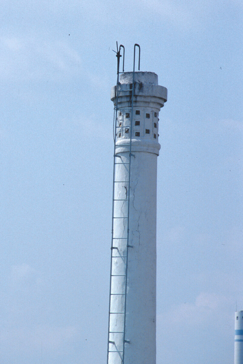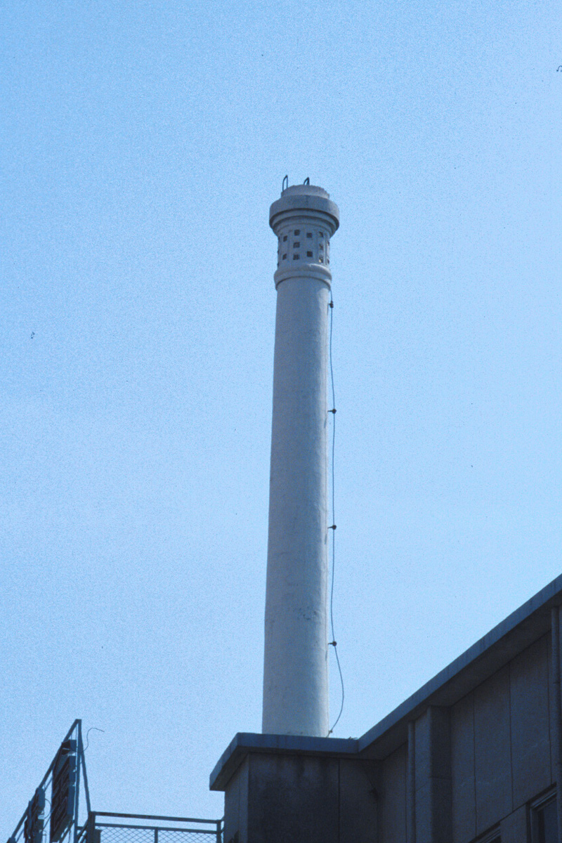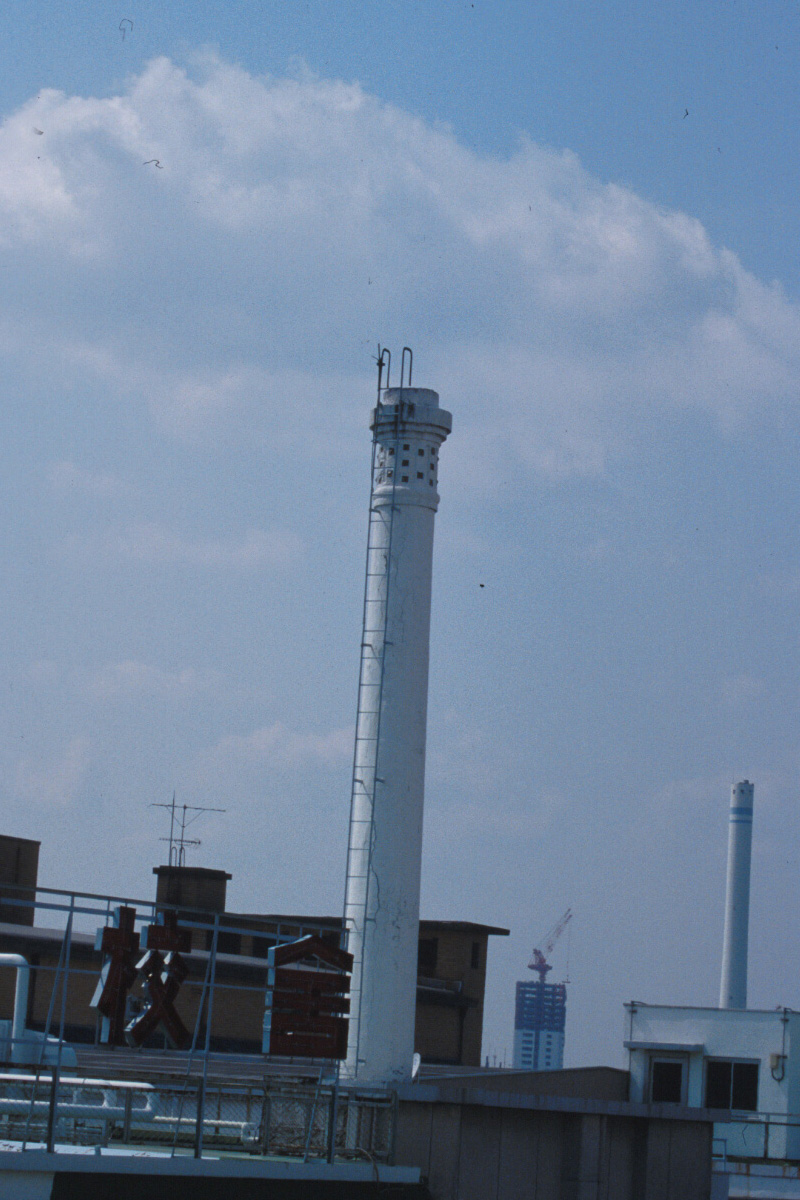 [No345 煙突/ビル] かつて山手線の車窓から見ることが出来た「ドレメ」の愛称の杉野学園ドレスメーカーの煙突。頂部の格子柄が可愛らしかった。分類