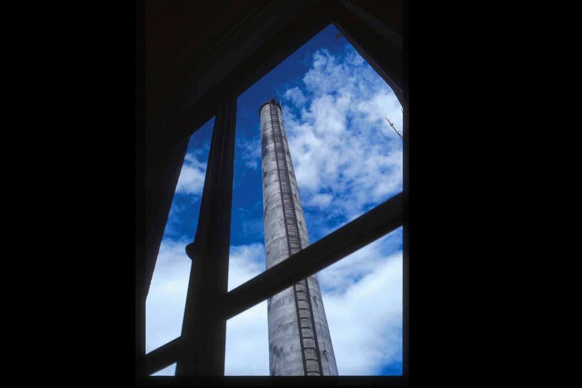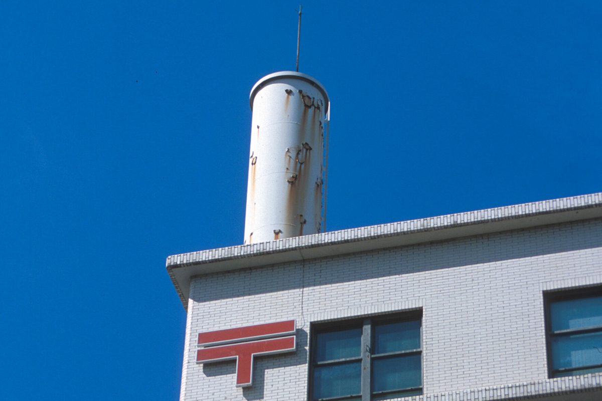 東京中央郵便局 所在地:東京都千代田区丸の内2-7撮影年:2000年、2005年、2023年 [No010 煙突/ビル] 電車が東京駅に着く寸前、車窓から見えた東京中央郵便局の煙突。現在は竣工時の姿に復原されている。