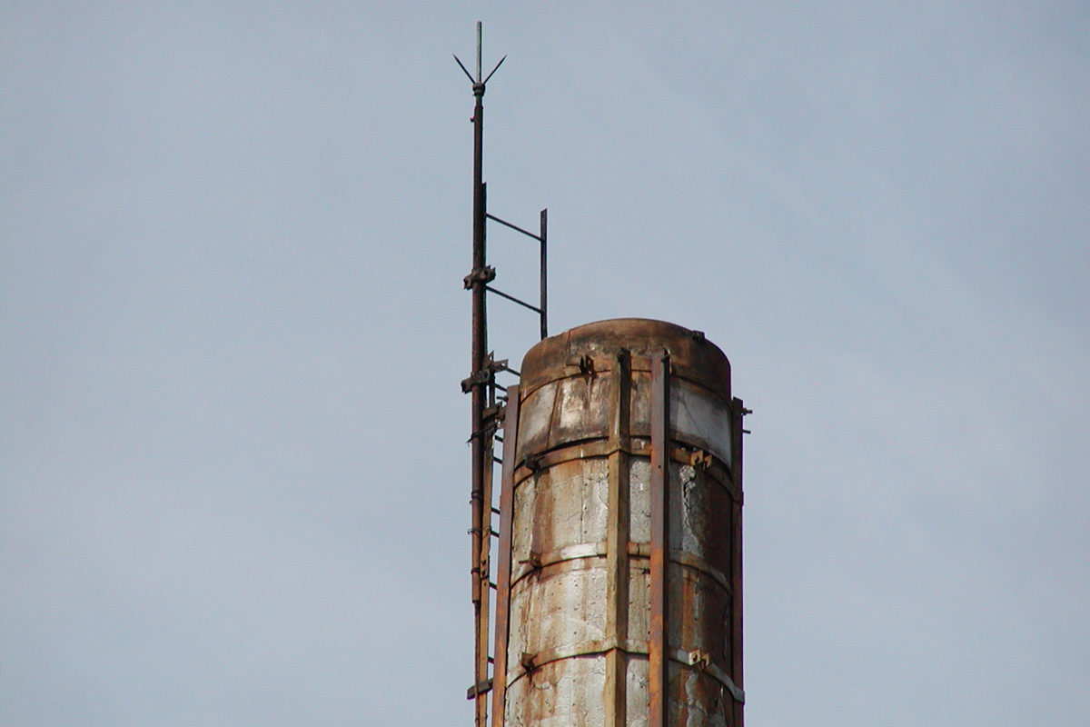 [No065 煙突/工場] 補強材の錆が煙突に染みこみ時間の経過を感じさせる