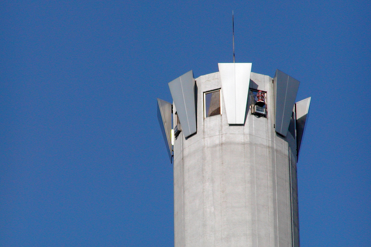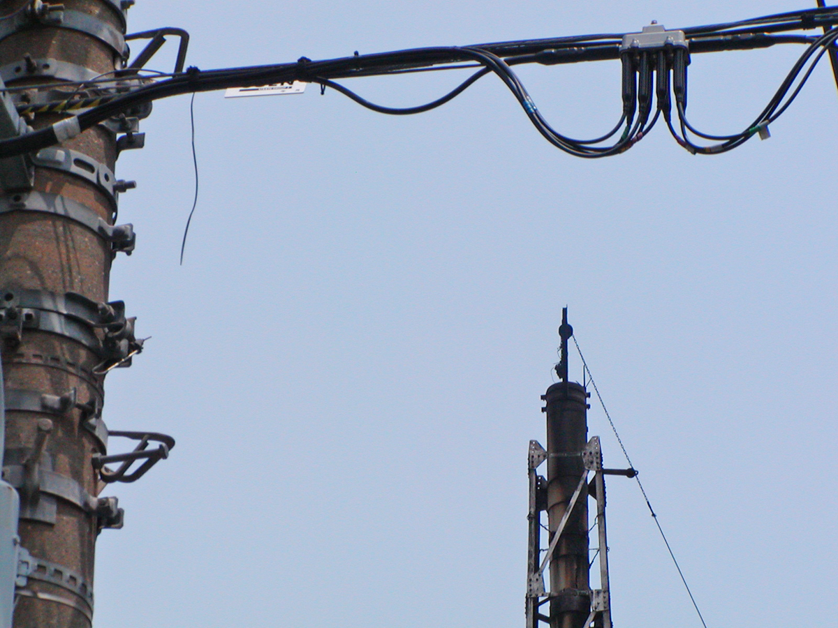 [No002 煙突/銭湯] 上野駅に近い下町の銭湯。煙突上部の清掃ブラシとチェー…